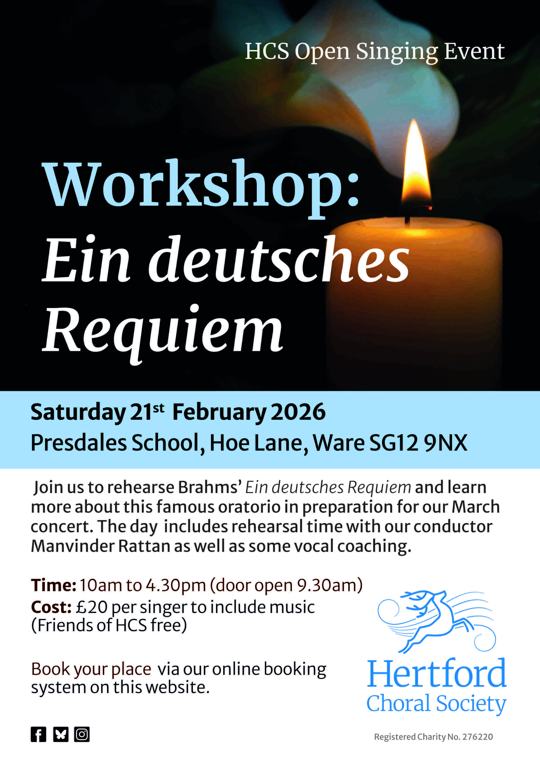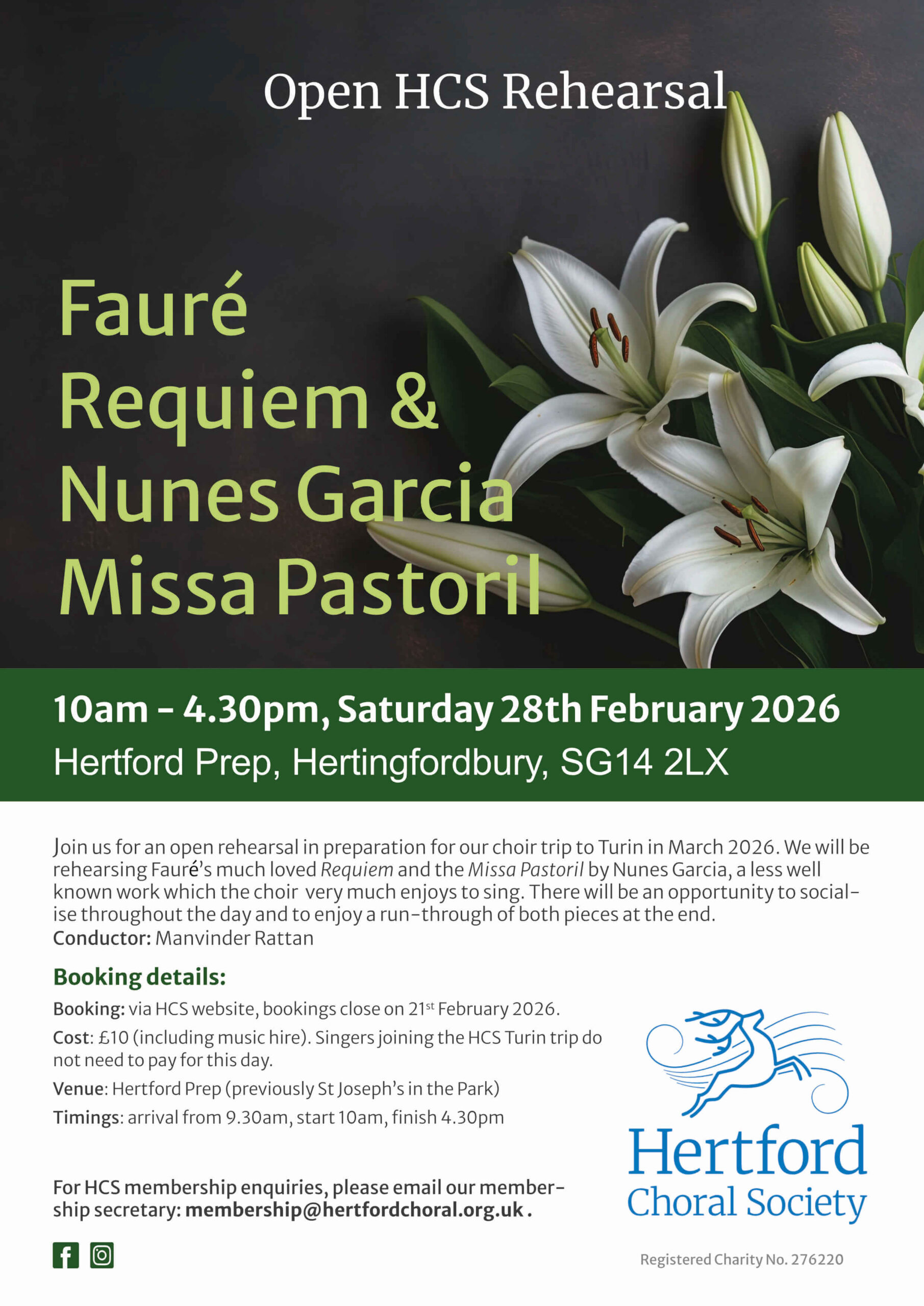 Hertford Choral Society is a Registered Charity number 276220. Further information can be found on our page on the Charity Commission website here