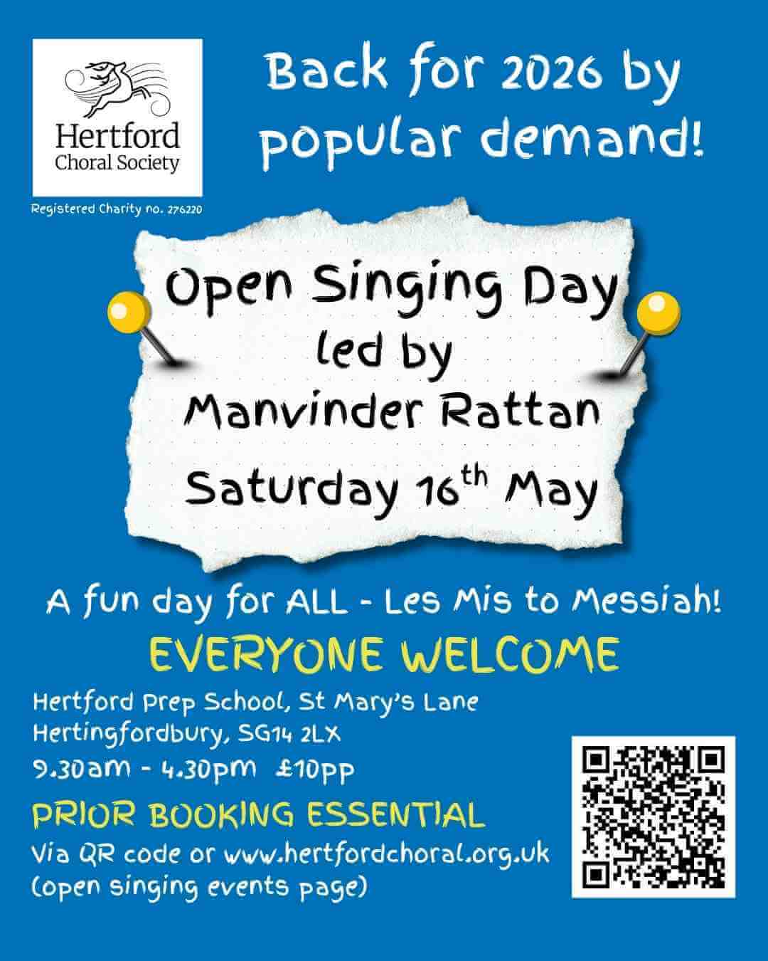 We regularly open up some of our events to singers who are not HCS members. This includes workshops, open singing days and town twinning exchanges with Hertford’s twin town’s in France and Germany. We are planning visits to Evron in France and Wildeshausen in Germany during 2026 and will give updates with further details through social media and our website.